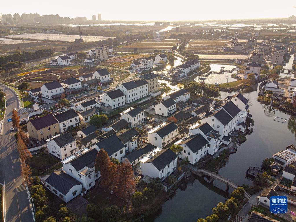 浙江省嘉兴市秀洲区油车港镇胜丰村景色( 2020年12月15日摄,无人机照片)。新华社记者 江汉 摄