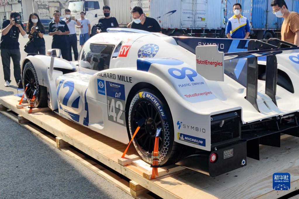 第四届进博会首批进境展品米其林氢能源赛车样车在上海完成通关验放(9月27日摄)。新华社发